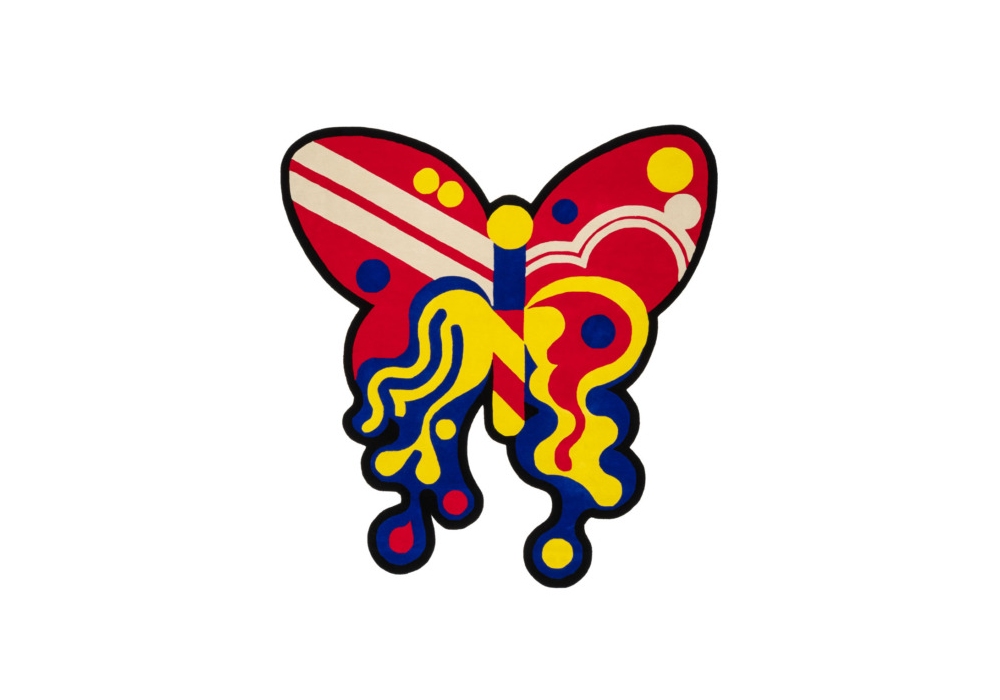 Farfalla diseñada por Archizoom Associati para Poltronova es una alfombra realizada en lana tupida a mano caracterizada por una explosión de colores primarios y formas geométricas sencillas atravesadas por motivos decorativos. Inspirada en el estampado diseñado por el grupo Archizoom en 1967 en busca de un ácido contraste entre la decoración floral y liberty y la experimentación que se estaba produciendo en el Pop Art en esos años.