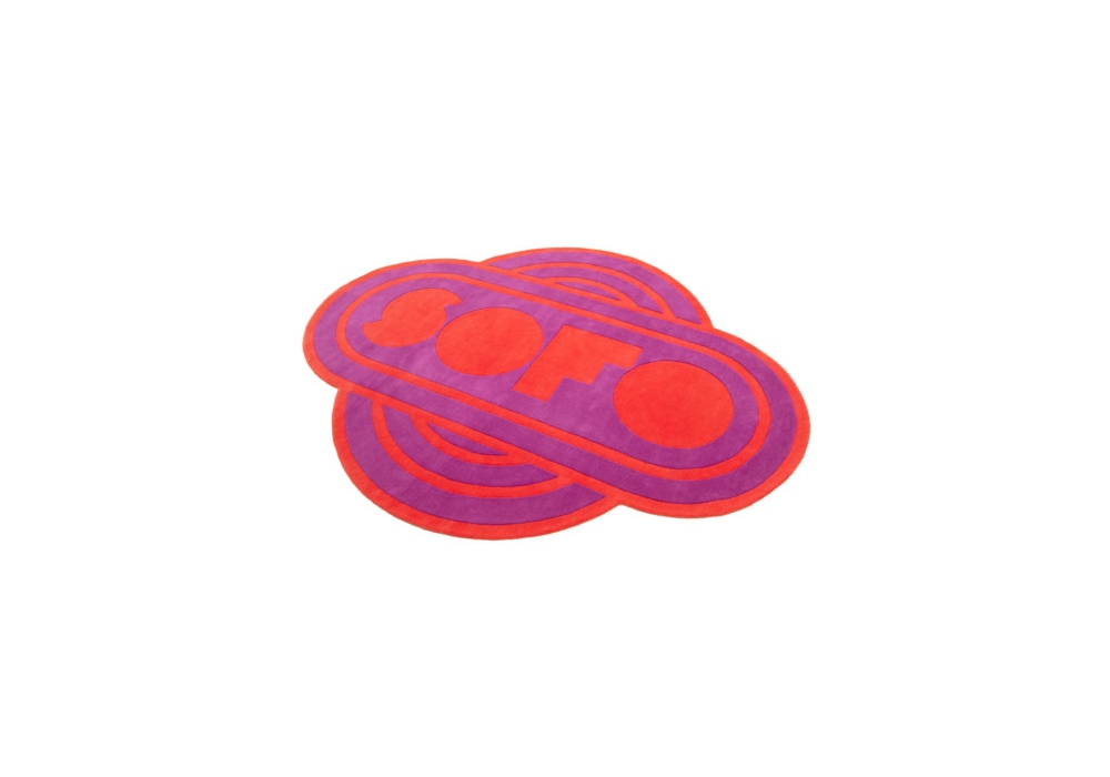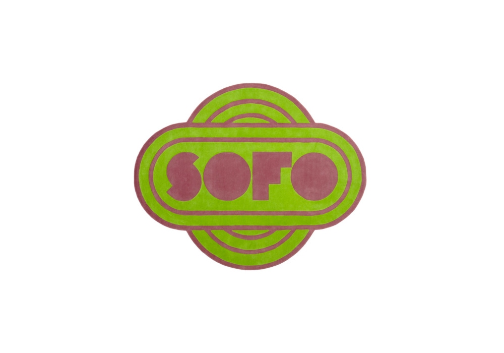 Sofo diseñada por Superstudio para Poltronova es una alfombra de lana anudada a mano. Una composición de círculos concéntricos con, en la parte central, formas tipográficas de carácter geométrico declarando el nombre del producto. La alfombra está disponible en dos variantes que reflejan los matices cromáticos típicos del sofá: verosa y rosancio.