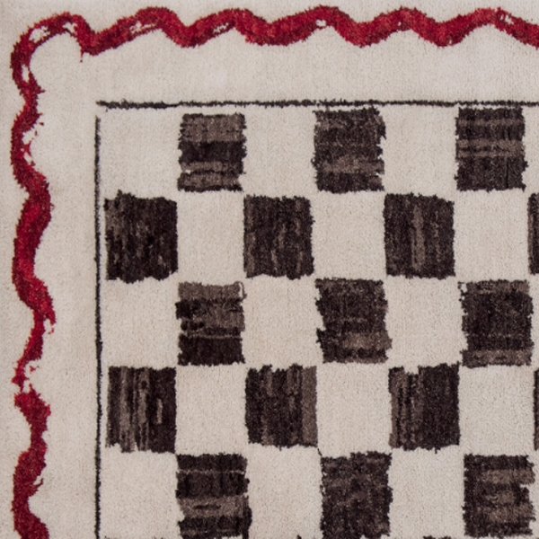 Squash diseñada por Faye Toogood para Poltrona Frau es una alfombra realizada totalmente a mano en 100% lana sobre estructura de madera. El anudado se realiza mechón a mechón, tomando cada hilo de lana que se anuda y corta, uno a uno, sobre los hilos de urdimbre hasta llenar una hilera entera. La alfombra está adornada con un patrón de ajedrez en diferentes combinaciones de colores. La calabaza está disponible en diferentes combinaciones de colores y tamaños.