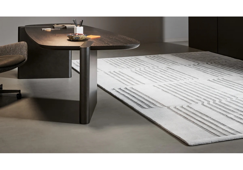 Tangeri diseñada por Bonaldo es una alfombra realizada en 70% lana y 30% tencel, disponible en diferentes acabados.