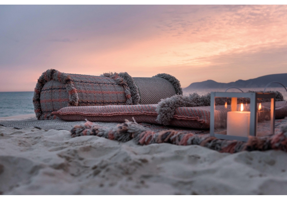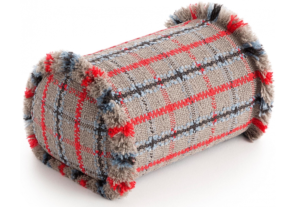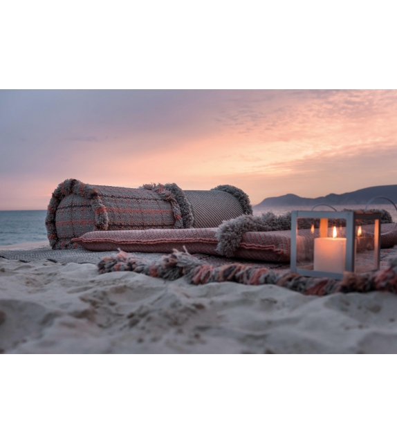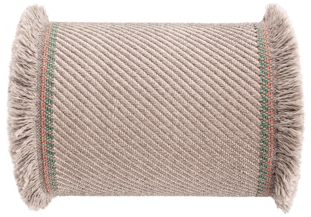 Garden Layers diseñado por Patricia Urquiola para Gan es un gran cojín cilíndrico con funda de PET 100% reciclado y relleno de espuma 100% de secado rápido. Disponible en diferentes acabados.