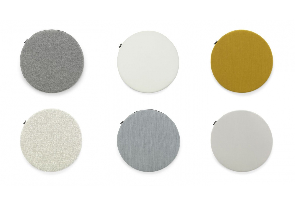 Soft Seats diseñado por Vitra es un cojín fabricado con revestimiento de tela o piel con una cara antideslizante. Disponible en diferentes acabados.
