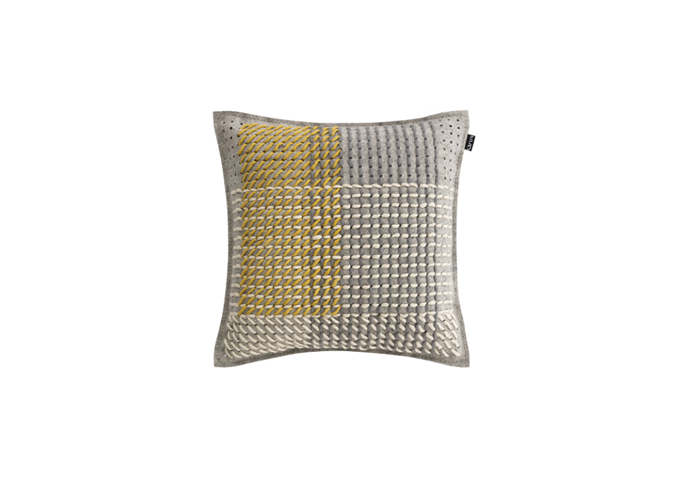 Canevas Geo diseñado por Charlotte Lancelot para Gan es un cojín disponible en dos tamaños y diferentes acabados.
