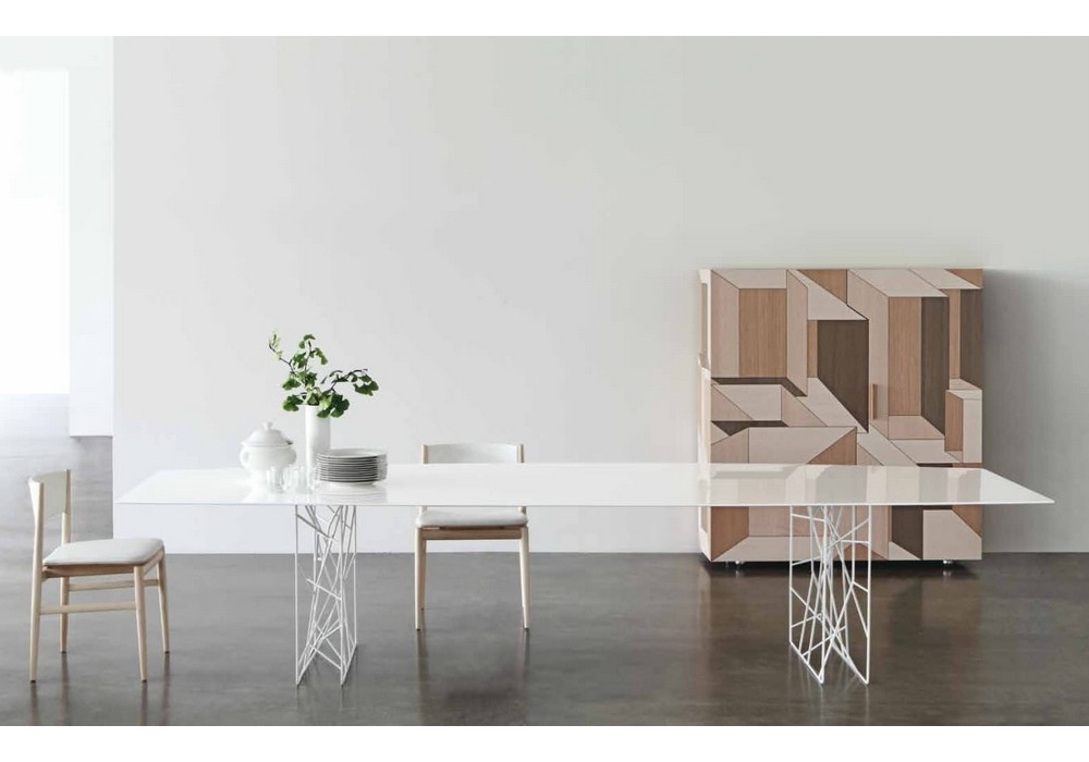 Inlay is a sideboard designed by Front for Porro. Inlay entirely recovers the inlay technique, an ancient and precious old time tradition. A sideboard for the sitting room covered with a decoration recalling parallelepipeds crossed in space, leading to a unique 3 D effect.