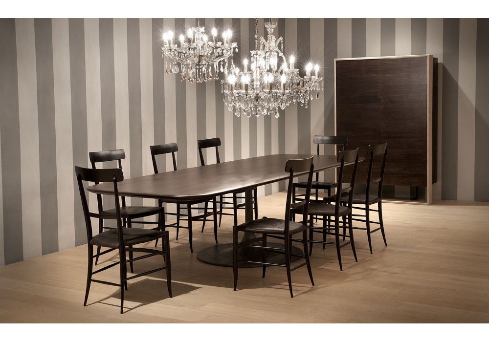 Bourgeois diseñado por Matteo Thun & Antonio Rodríguez para Baxter es un hermoso aparador con estructura de madera contrachapada con hoja de nogal canaletto y cajones en nogal canaletto sólido y manchado en color natural y aceite natural. El interior de los cajones del aparador bajo están acabados en nogal; el interior de los cajones del aparador alto están lacados en color Sikkens mate. Base de metal con acabado negro mate. Marco de soporte en metal tapizado en piel.