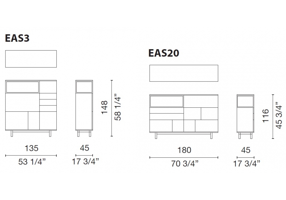 | Dimensiones | 135 x 45 x H 148 cm (EAS3); 180 x 45 x H 116 cm (EAS20). |