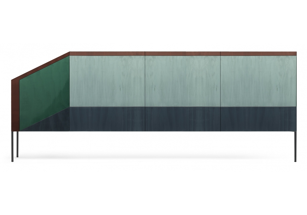 Ritratti diseñado por Marzia & Leo Dainelli para Mogg es un aparador en MDF chapado en madera con una mezcla de acabado brillante y mate. Disponible en diferentes acabados y dimensiones.
