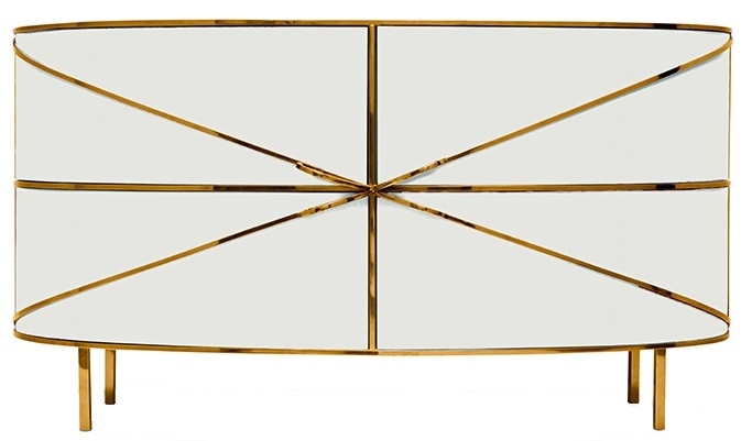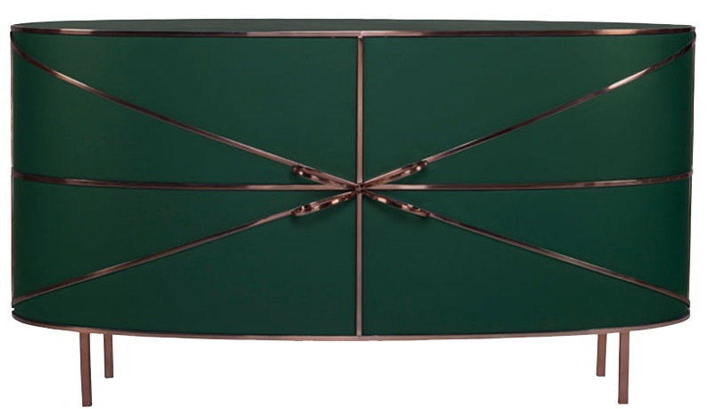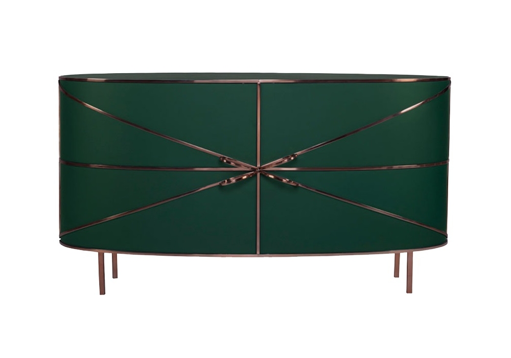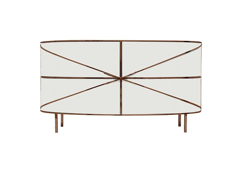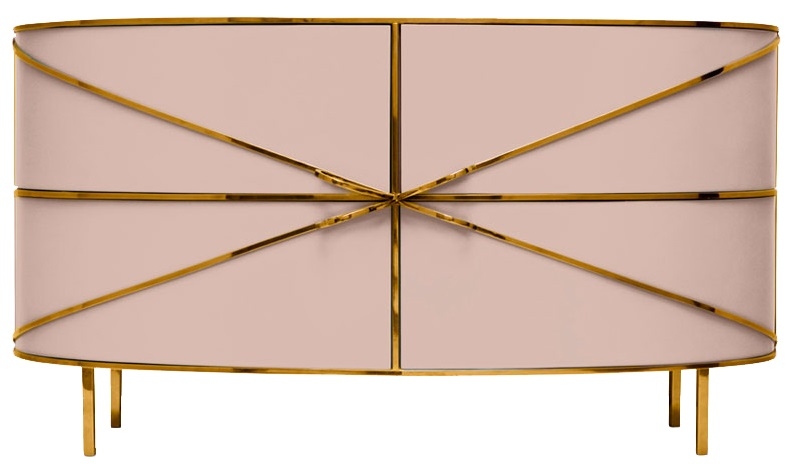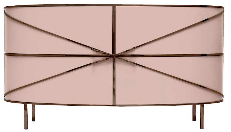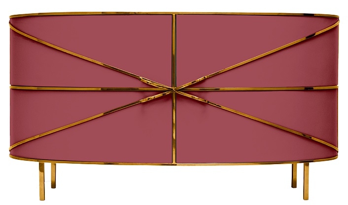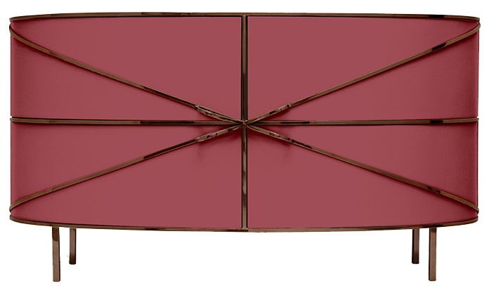 88 Secrets Sideboard firmado por Nika Zupanc para Scarlet Splendour es un aparador de las formas elegantes y sinuosas con detalles de metal en oro amarillo o rosa. Disponible en diferentes acabados.