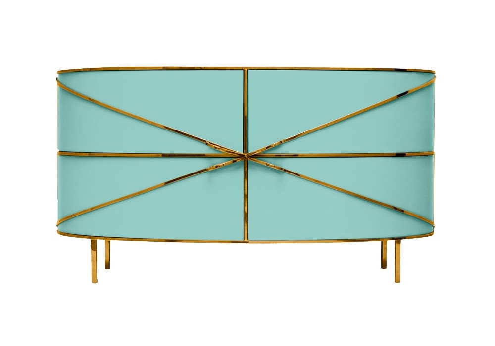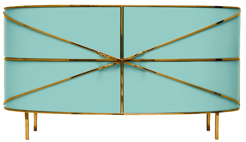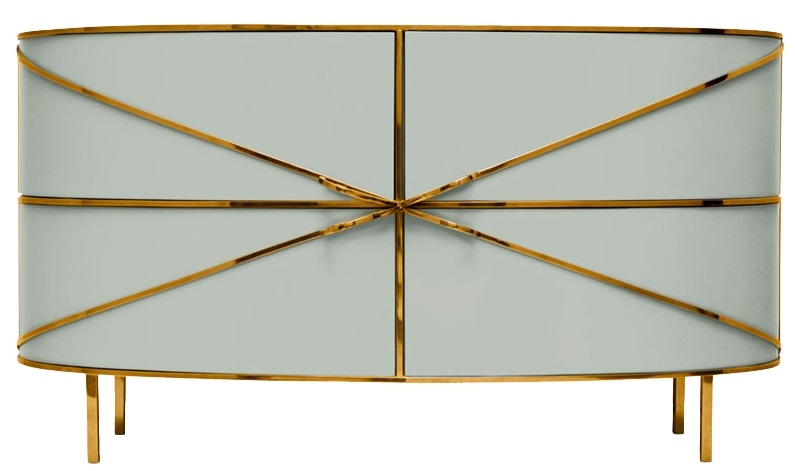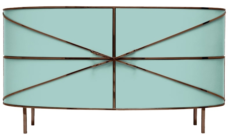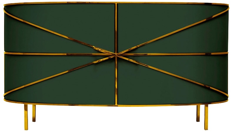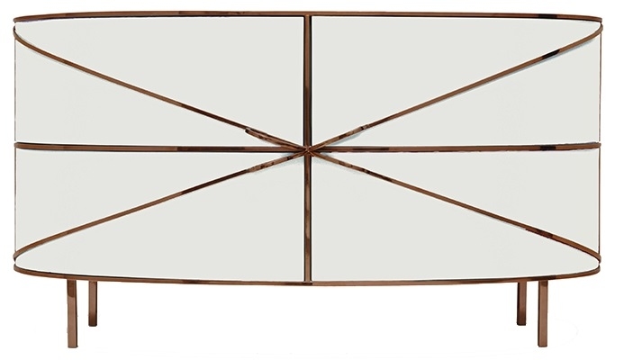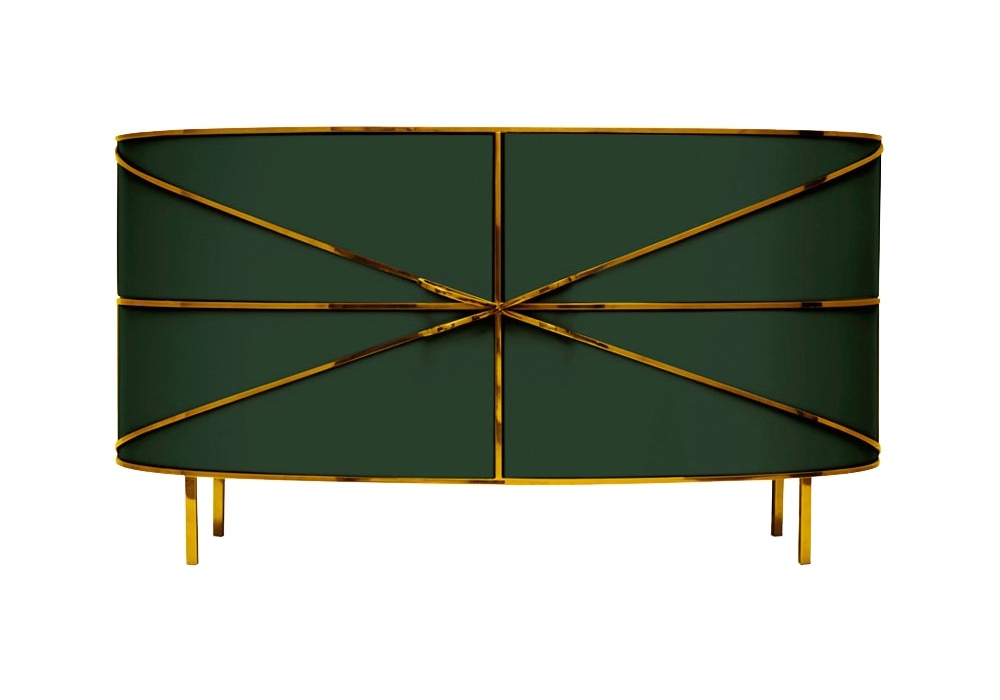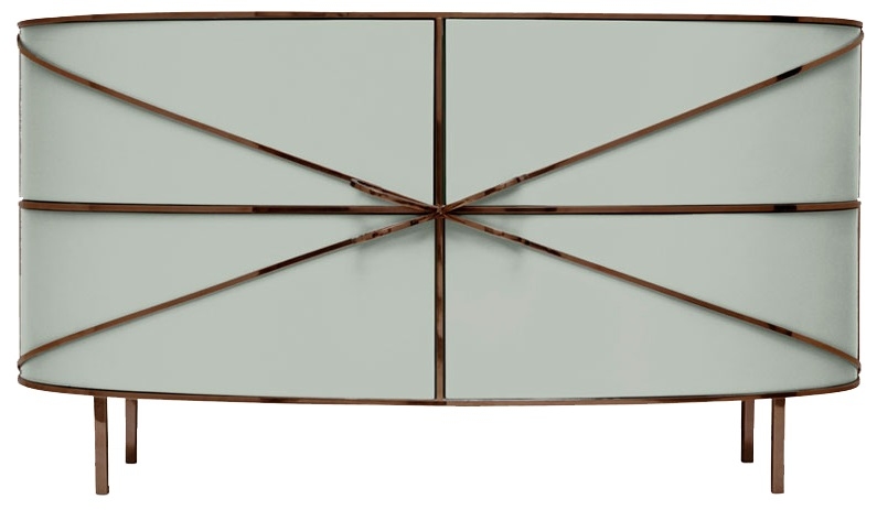 88 Secrets Sideboard firmado por Nika Zupanc para Scarlet Splendour es un aparador de las formas elegantes y sinuosas con detalles de metal en oro amarillo o rosa. Disponible en diferentes acabados.