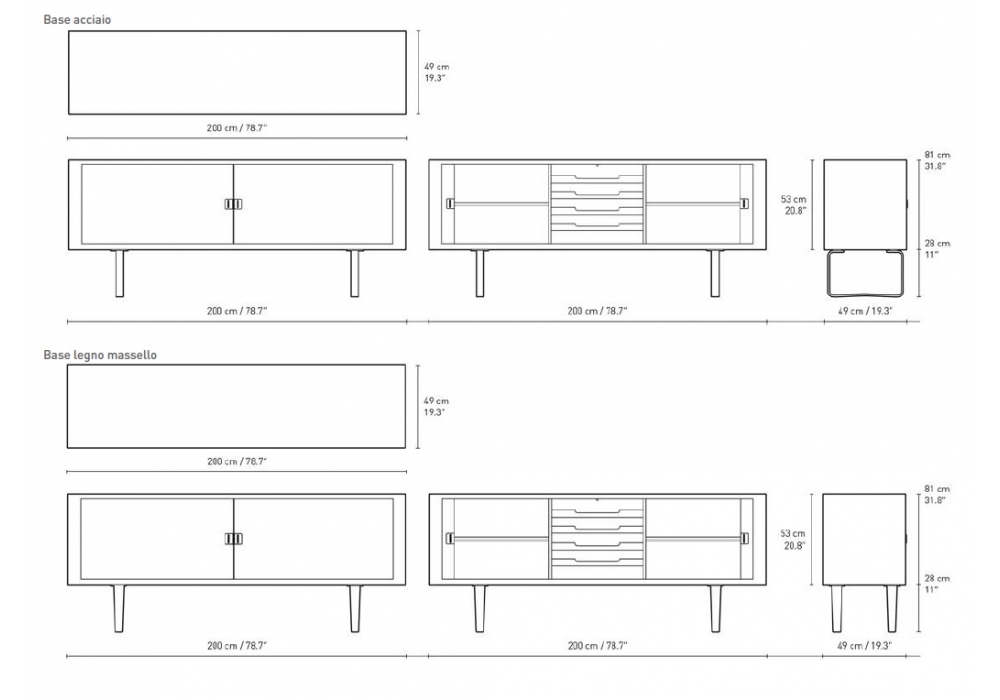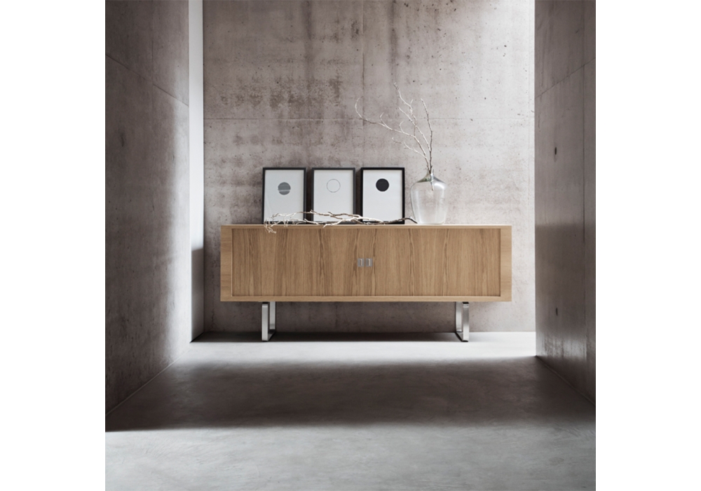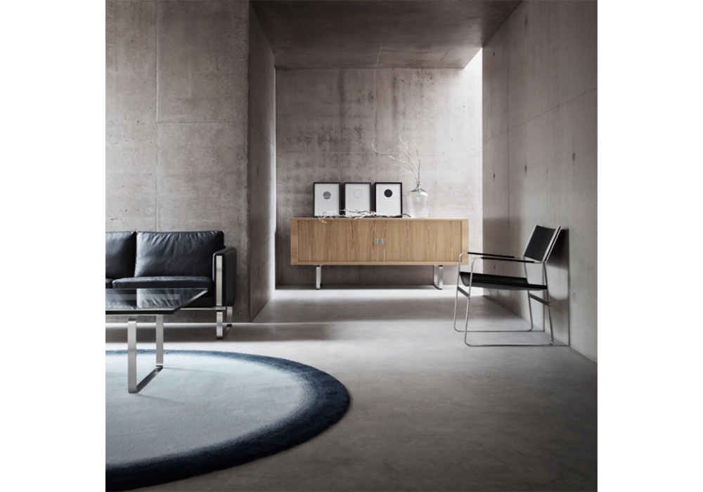CH825 Credenza diseñado por Hans J. Wegner para Carl Hansen & Søn es un aparador con acabado exterior chapado en madera de nogal o roble y acabado interior en madera maciza de roble. El interior cuenta con estantes ajustables y cajones extraíbles diseñados para permitir la instalación sencilla de cajones adicionales. Las patas están disponibles en acero o en el mismo acabado que la chapa.
