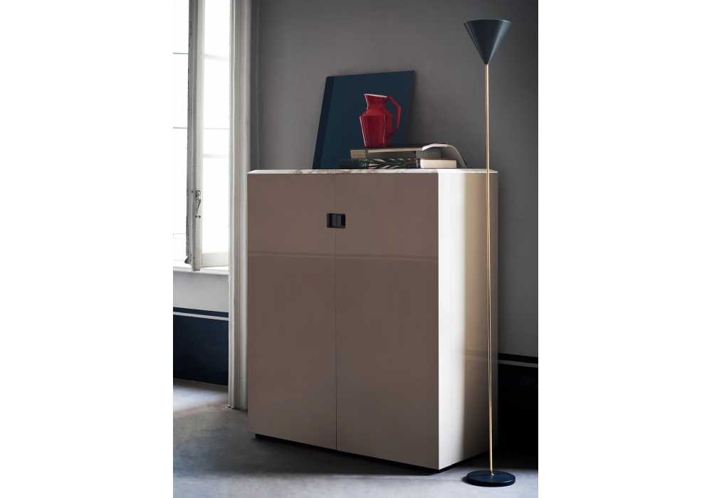Rafael diseñado por Roberto Lazzaroni para Flexform es un aparador de la colección Mood en madera de fresno lacado moka con estantes internos en fresno pulido. Manijas en metal. Tapa en mármol disponible en diferentes acabados.