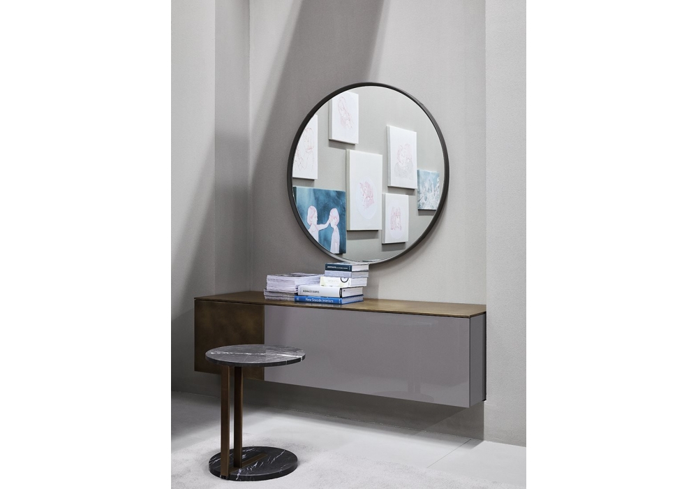 Ruben diseñada por Andrea Parisio para Meridiani es una unidad de pared con estructura en madera lacada mate y acabados exteriores en laca, recubierta en latón bronceado, recubierta mármol.