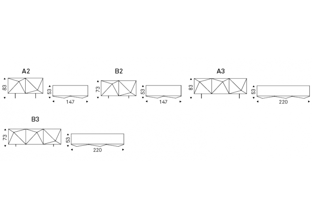 | Dimensiones | 2_ L 147 x W53 x H 73 cm; 3_ L 220 x W53 x H 73 cm |