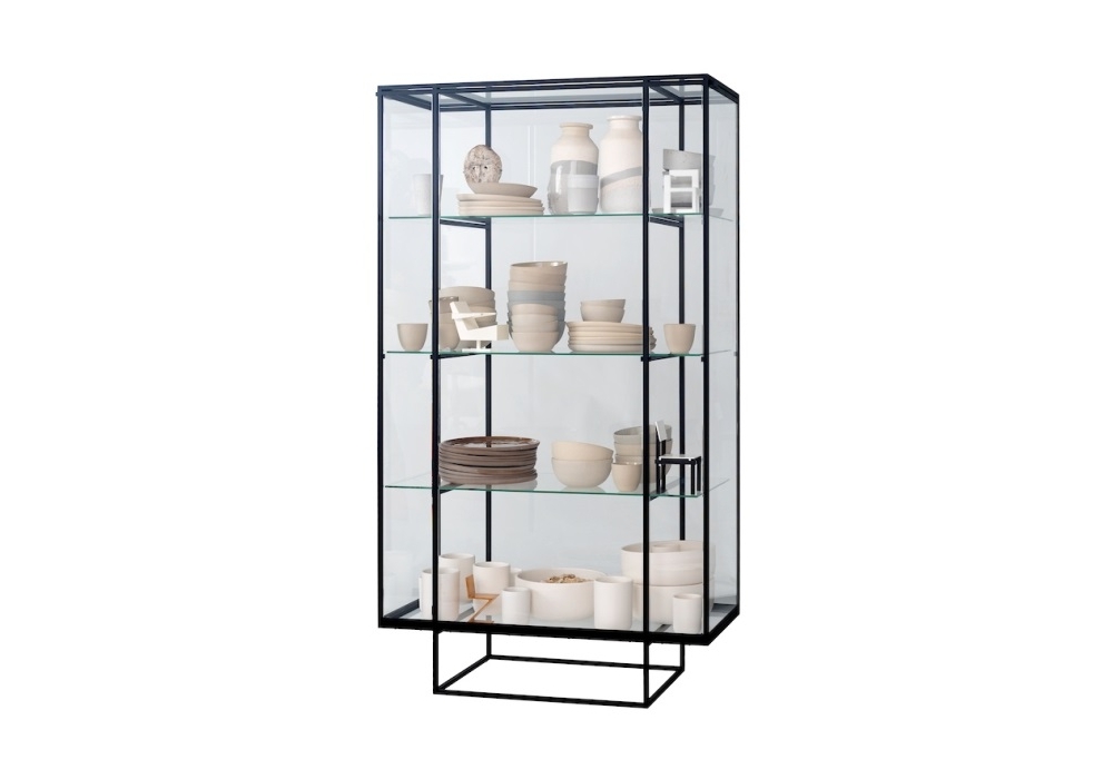 Tangled diseñada por Carolina Wilcke para Spectrum es una vitrina con estructura realizada en acero, barnizado en polvo negro o gris pardo. Vidrio (4 mm) disponible en 2 diferentes acabados: transparente o ahumado.