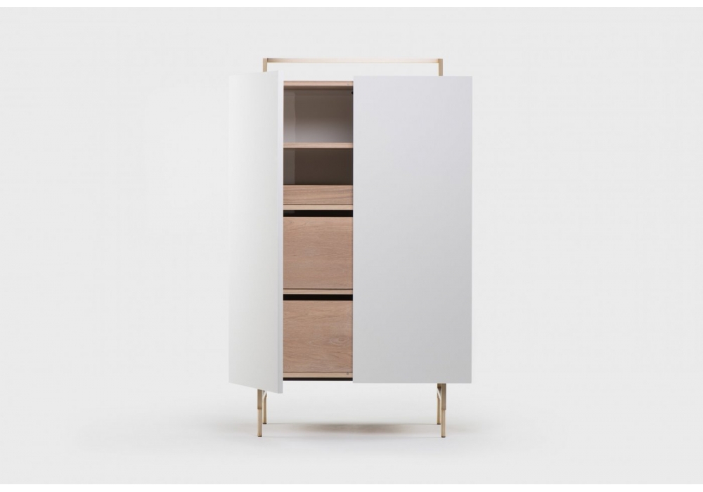 Trunk diseñado por Neri & Hu para De La Espada es un mueble contenedor con exterior realizado en HDF pintado, cajones internos y estantes disponibles en diferentes acabados. Estructura en latón cepillado.