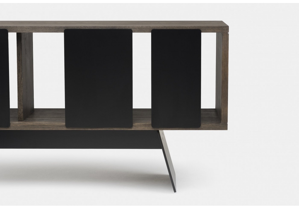 Different Trains diseñado por Matthew Hilton para De La Espada es un mueble contenedor realizado en madera disponible en diferentes acabados con paneles verticales realizados en laminado disponible en 4 colores y patas en acero barnizado negro. También disponible en 6 medidas.