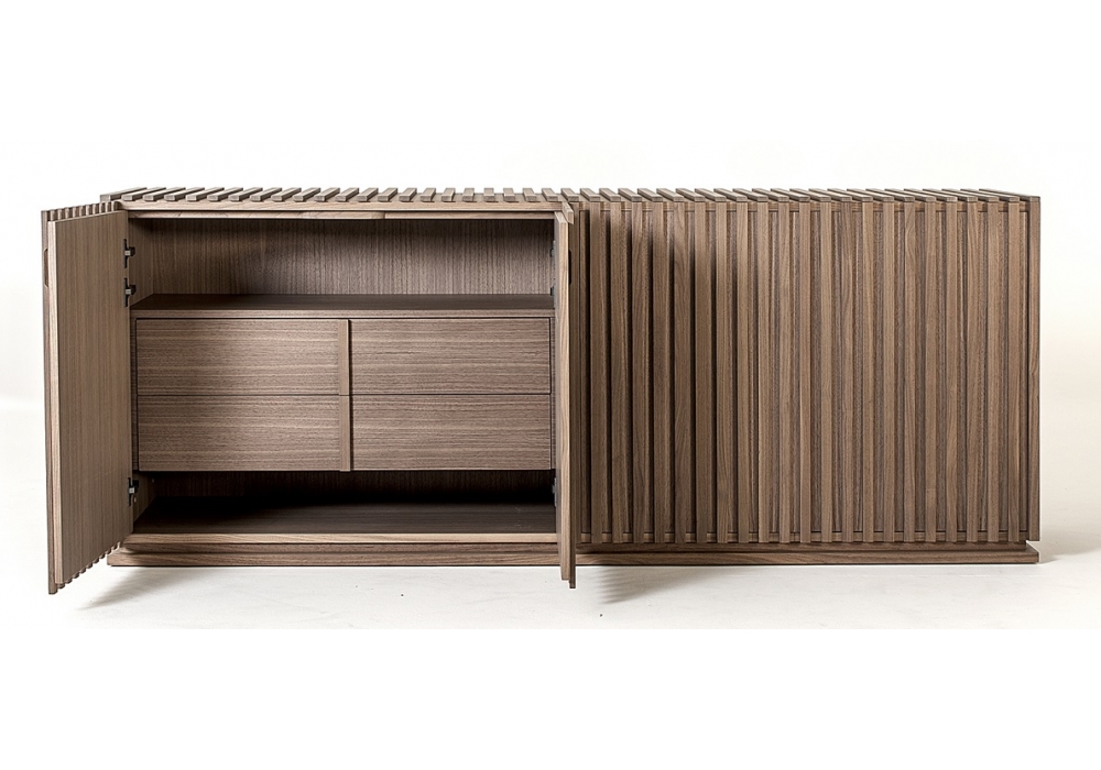 Bars diseñado por Ferruccio Laviani para Emmemobili es un aparador realizado con paneles chapados. Las rayas, realizada de madera maciza, decoran toda la estructura o solo las puertas. Espacios interiores equipados con estanterías en lo mismo acabado de la estructura.