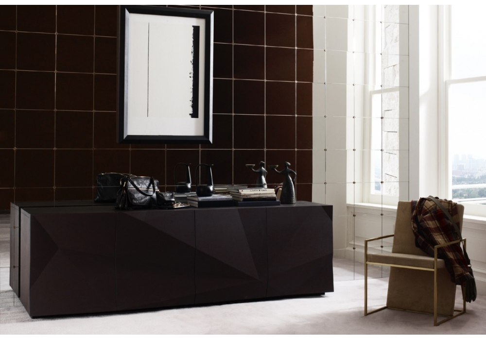 Crash diseñado por Ferruccio Laviani para Emmemobili es un aparador caracterizado por puertas diamantadas de fuelle. Las caracteristicas puertas – en las versiones de cm. 180, 240 y 270 se abren de fuelle para convenir la completa visión y acceso interior. También disponible en diferentes acabados y medidas.