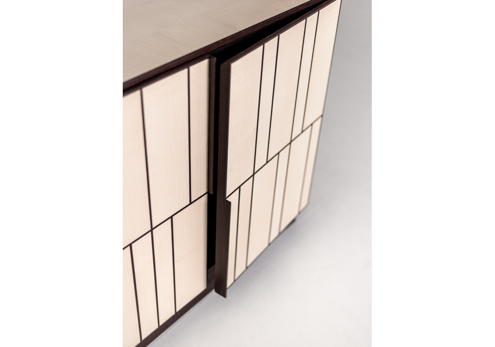 Omamond diseñado por Davide Tagliabue para Emmemobili es un aparador con estructura de arce. Puertas batientes con articulación en ángulo de 45°. Espacios interiores equipados con un estante de vidrio templado extrawhite cada uno. Disponible en 2 medidas: con 4 o 6 puertas.