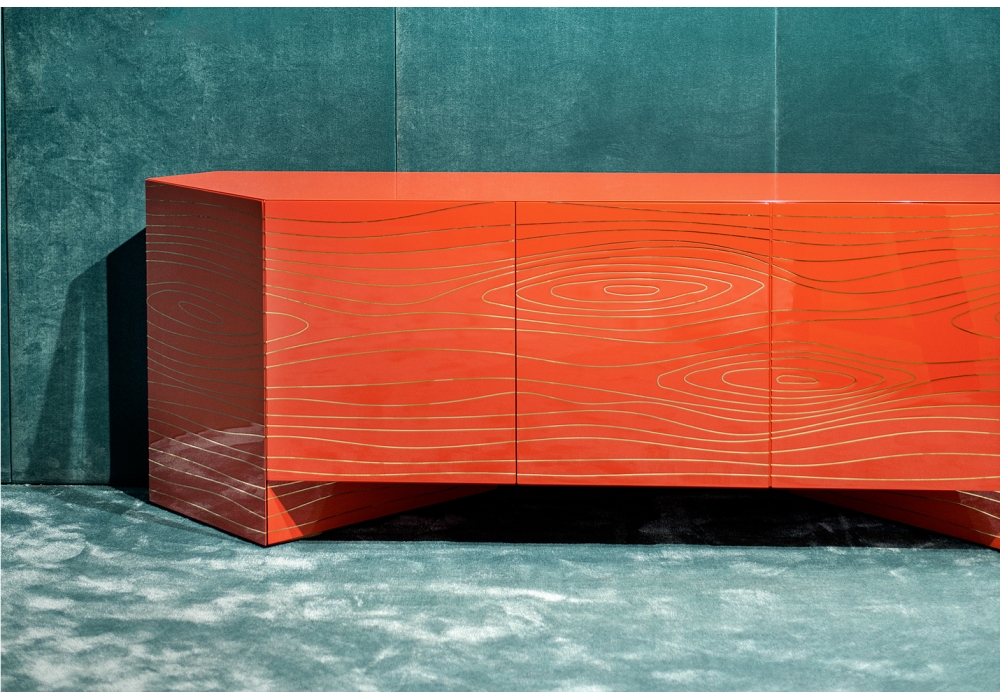 Trapezio diseñado por Ferruccio Laviani para Emmemobili es un aparador con estructura realizada con paneles contrachapados o lacados, caracterizada por la inusual forma trapezoidal. Disponible en 2 medidas y versiones: con puertas decoradas o lisas.