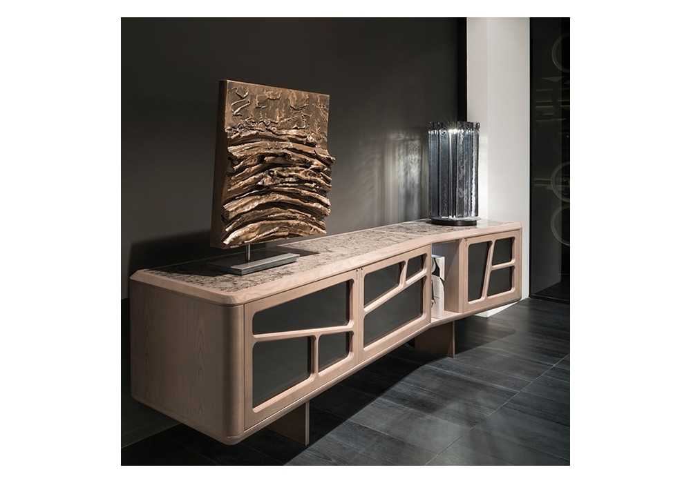 Disegual diseñado por Umberto Asnago para Giorgetti es un aparador con estructura en madera de fresno y tablero disponible en diferentes acabados.