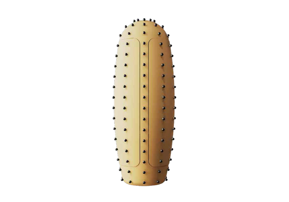 Oasis diseñado por Richard Hutten para Scarlet Splendour es un mueble contenedor en forma de cactus hecho de MDF, madera contrachapada y latón.