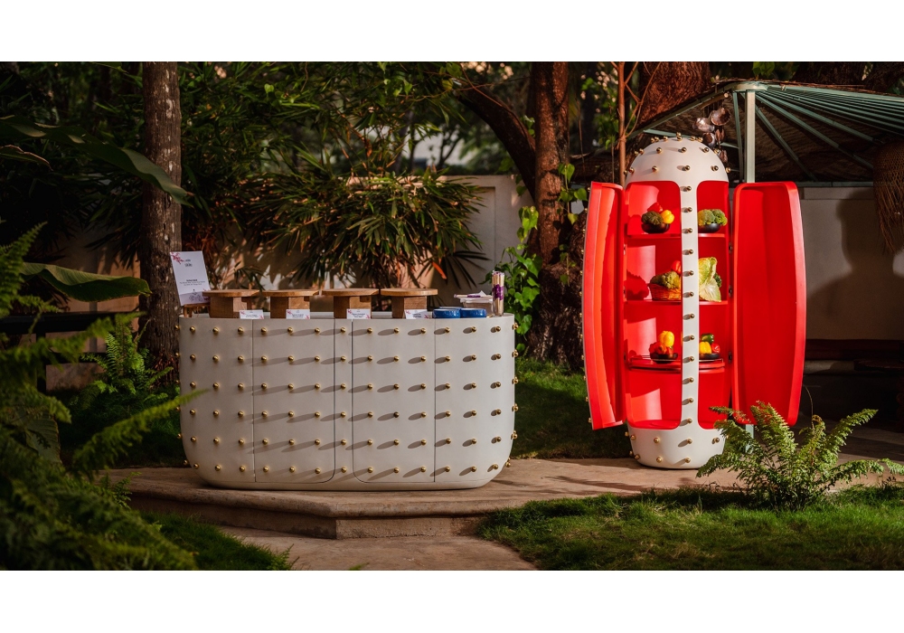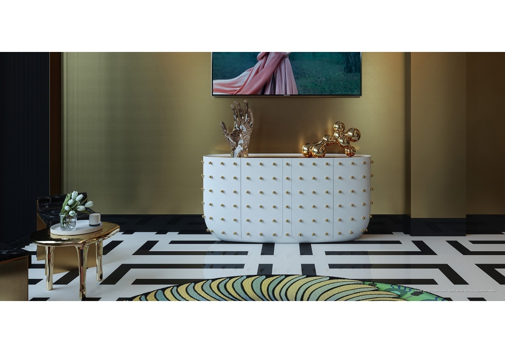 Oasis diseñado por Richard Hutten para Scarlet Splendour es un aparador hecho de MDF, madera contrachapada y latón.