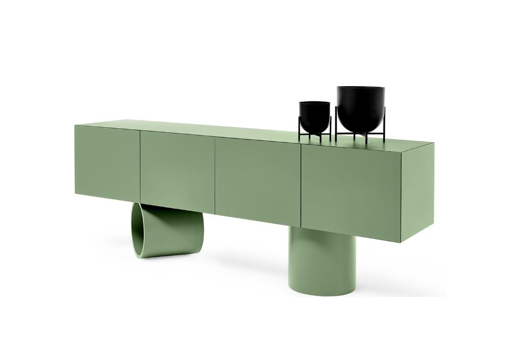 Giunone diseñado por Claudio Bitetti para Mogg es un aparador con estructura de MDF completo con 4 puertas y estantes internos de vidrio. Los pies y el contenedor decorativo siempre tienen el mismo acabado que el aparador. Disponible en diferentes modelos.