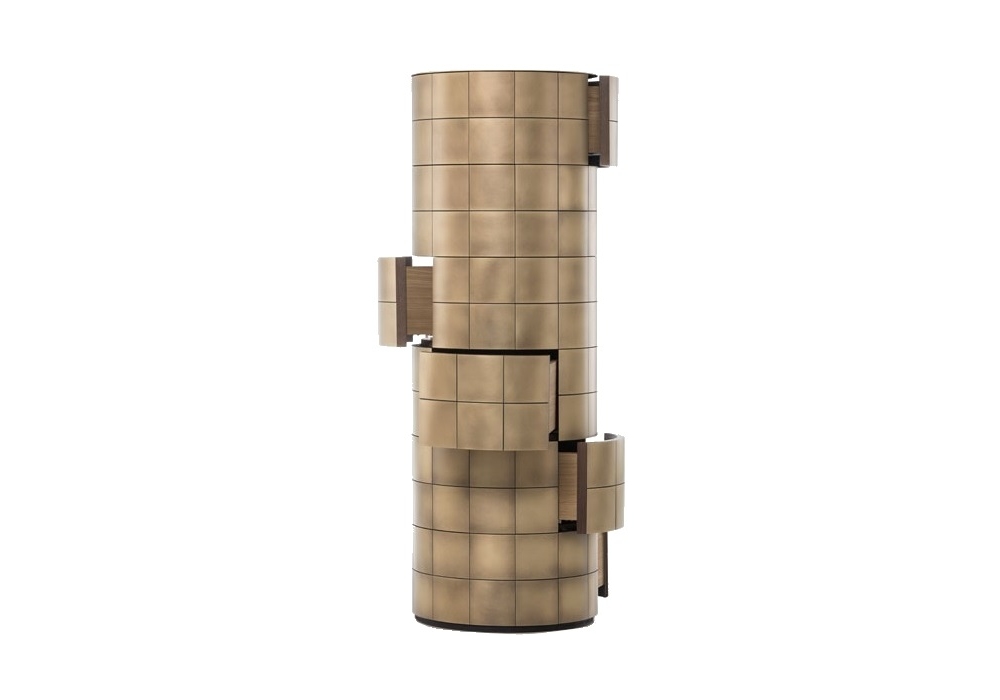 Pandora diseñada por Martinelli Venezia para DeCastelli es una cajonera circular revestida en metal, cajones invisibles con estructura interna en roble natural con apertura push-pull. Disponible en diferentes acabados y dimensiones.