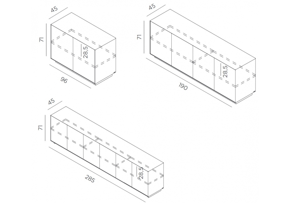 | Dimensiones | • 96 x 45 x H 71 cm; • 190 x 45 x H 71 cm; • 285 x 45 x H 71 cm |
