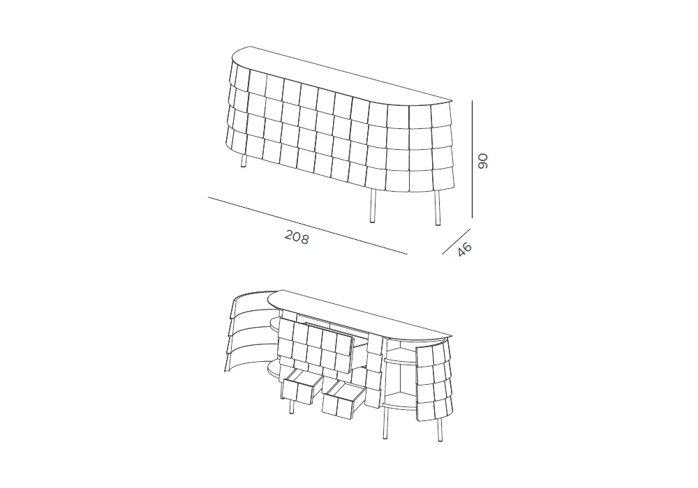 Yoroi diseñado por Alessandro Masturzo para DeCastelli es un aparador con dos puertas laterales y tres cajones revestidos por todos lados en metal y estructura interna en roble natural. Cajones con apertura push-pull. Disponible en diferentes acabados.