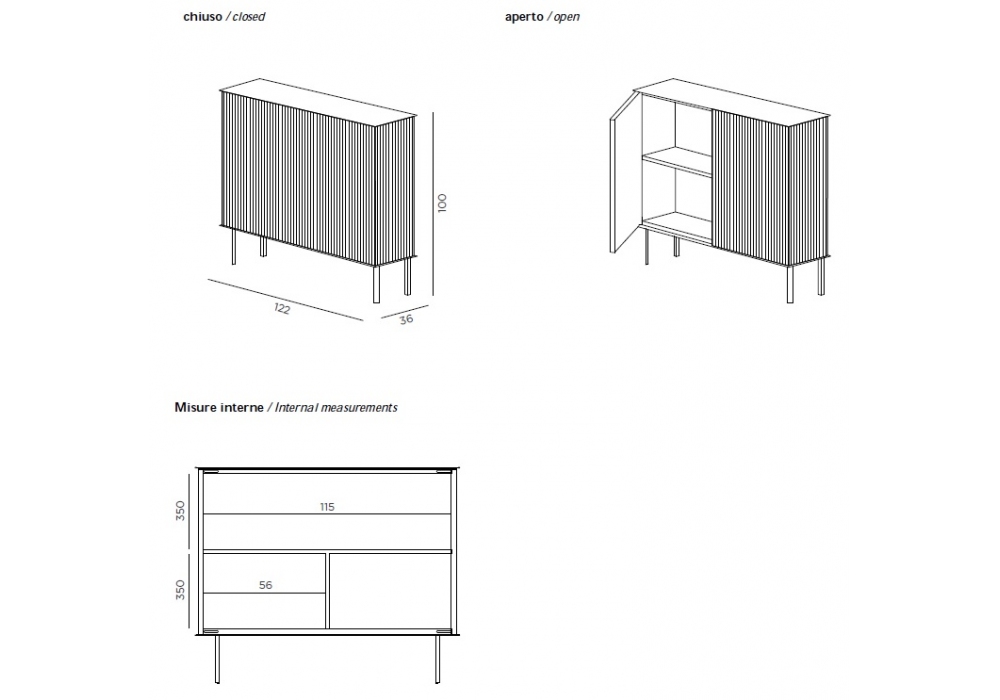 Elizabeth diseñado por Nathalie Dewez para DeCastelli es un mueble contenedor revestido en metal plisado en todos los lados y estructura interna en madera. Puertas batientes con apertura push-pull. Disponible en diferentes acabados.