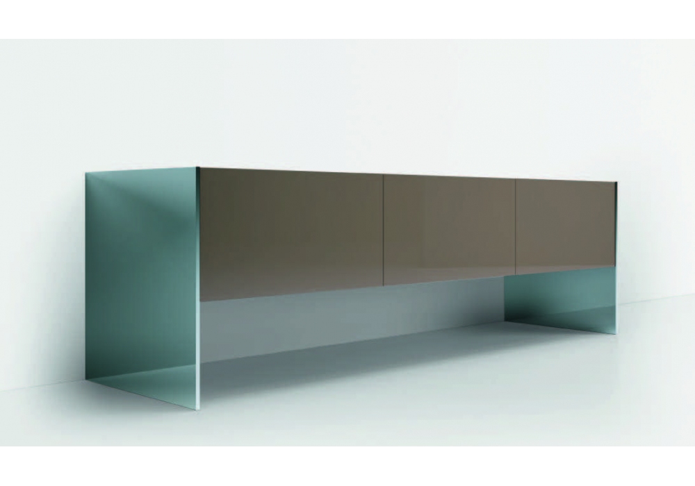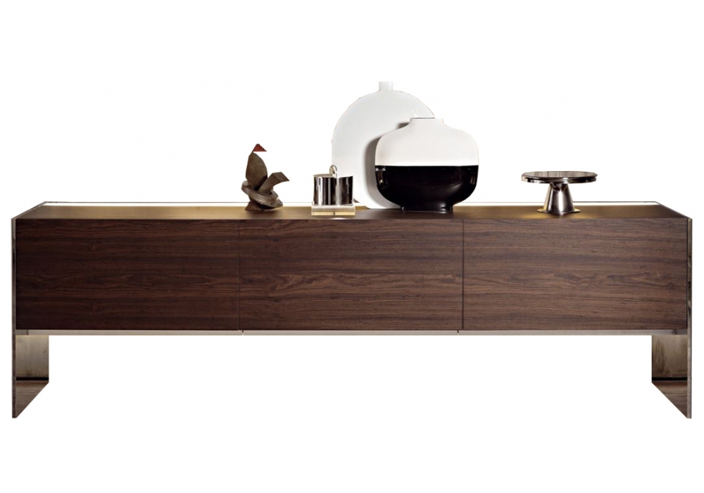 Steel diseñado por Lodovico Acerbis para Acerbis es un aparador con laterales de acero inoxidable pulido espejo y estructura disponible en mate, lacado brillante o madera.