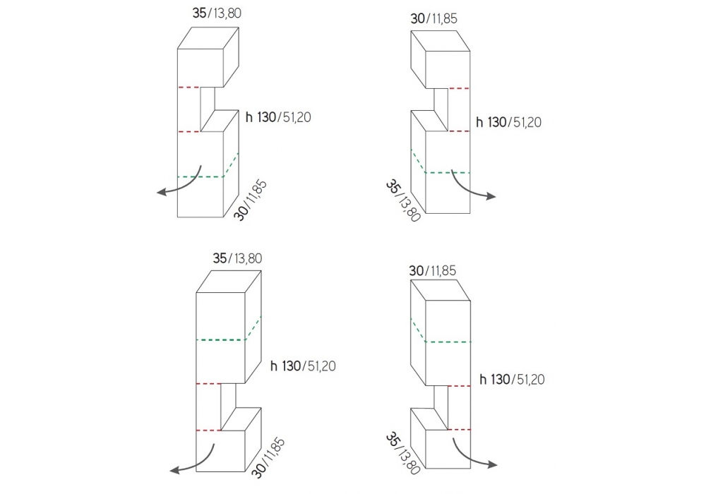Dimensiones • L 130 x 30 x H 35 cm; • L 35 x 30 x H 130 cm