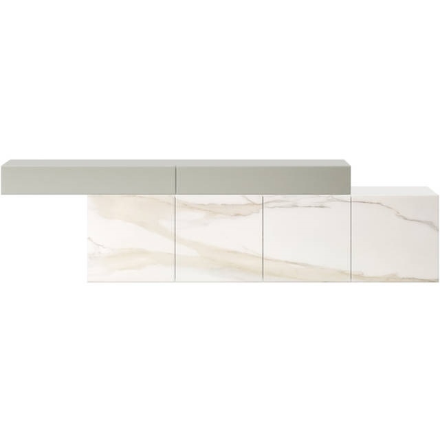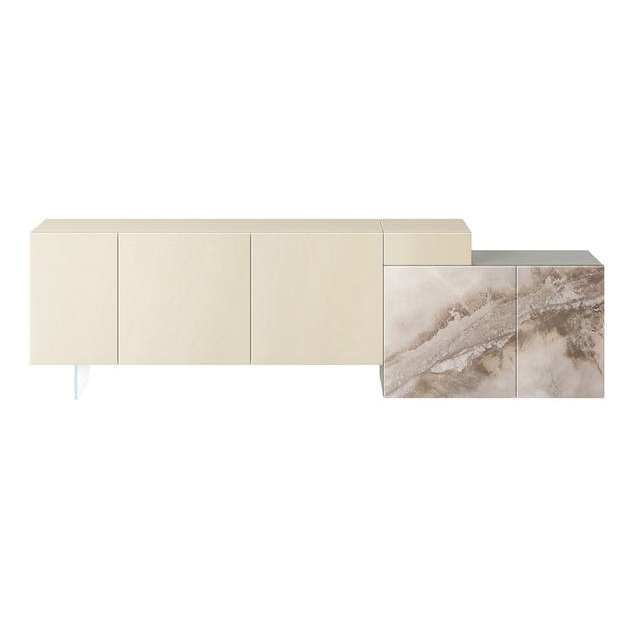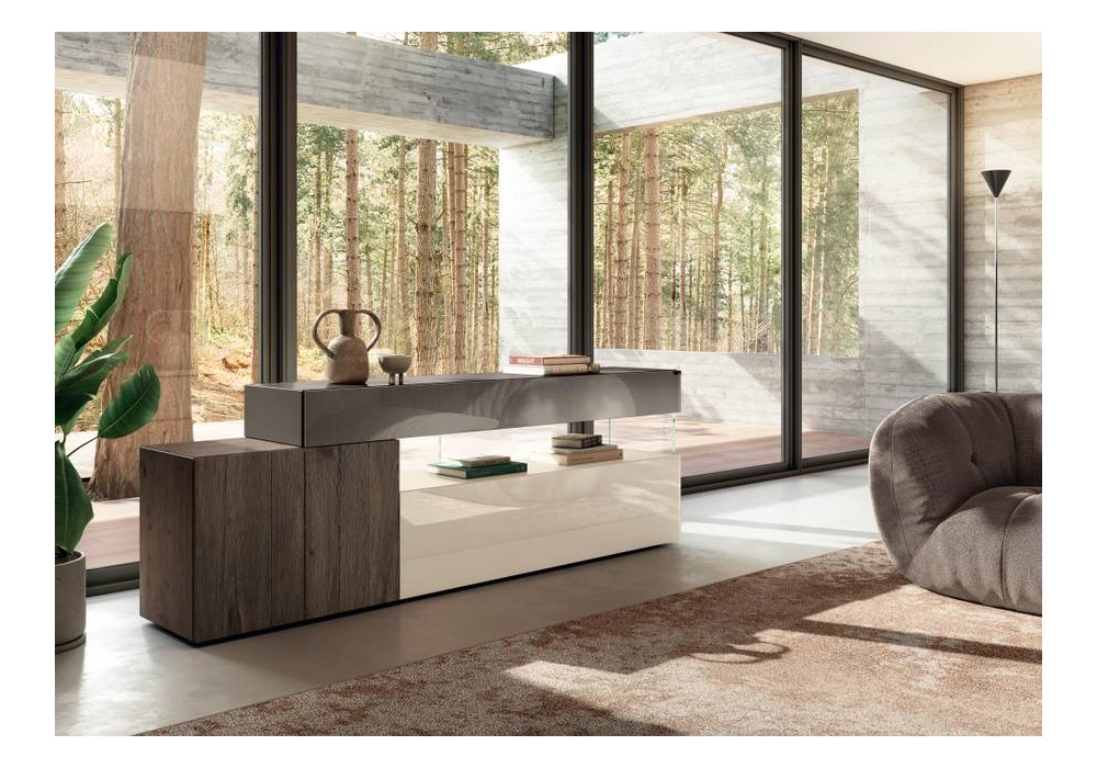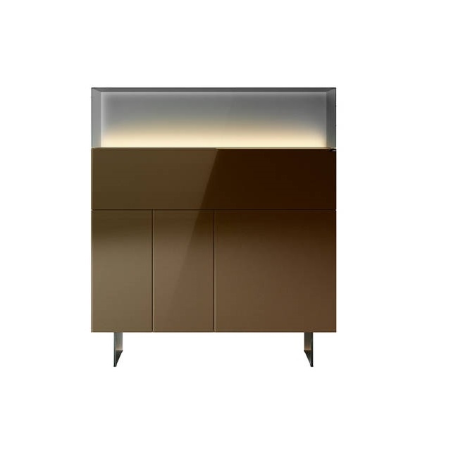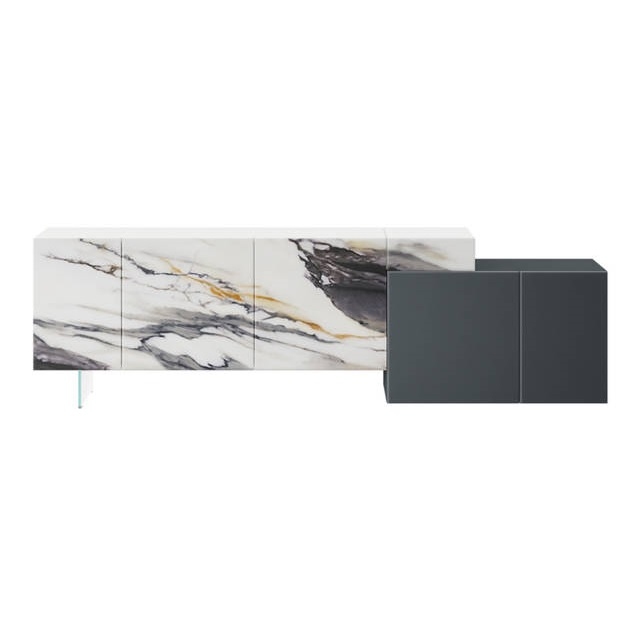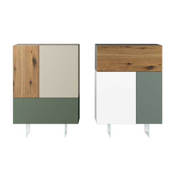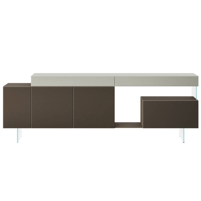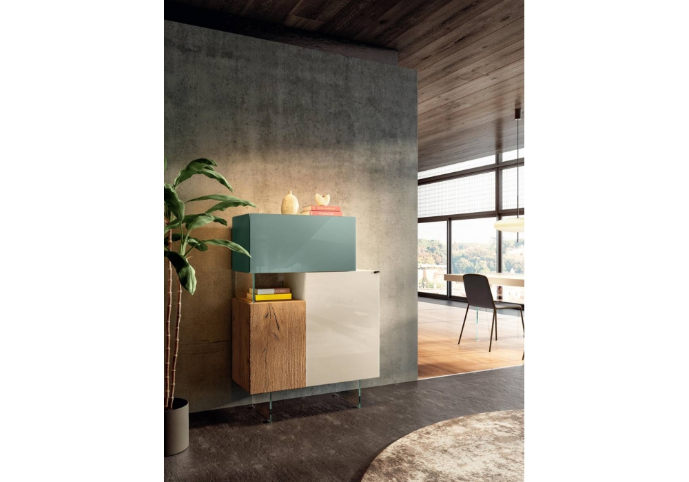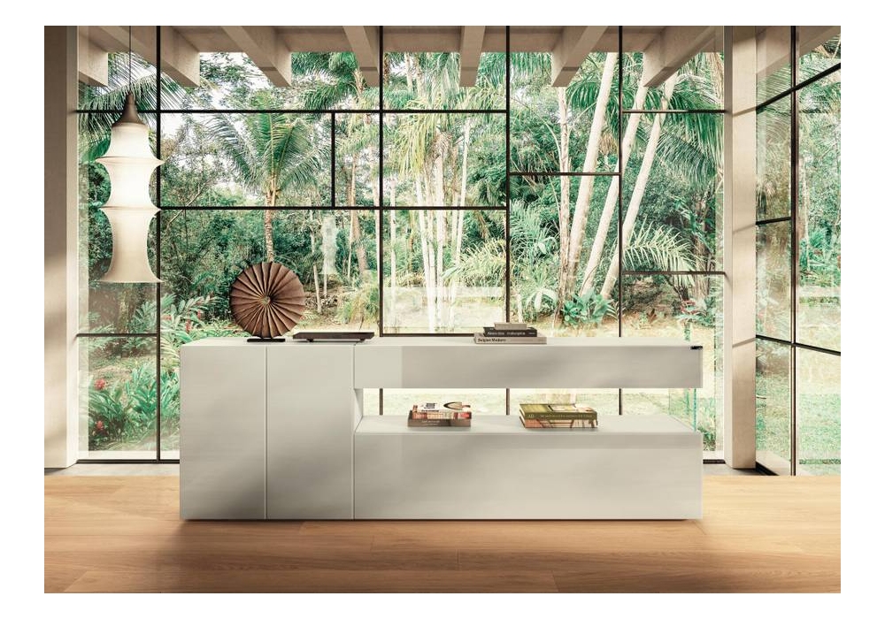 36e8 diseñado por Daniele Lago es un aparador que se puede personalizar en tamaño, forma y color. Es posible integrar recipientes fabricados íntegramente en vidrio, xglass o wildwood.
