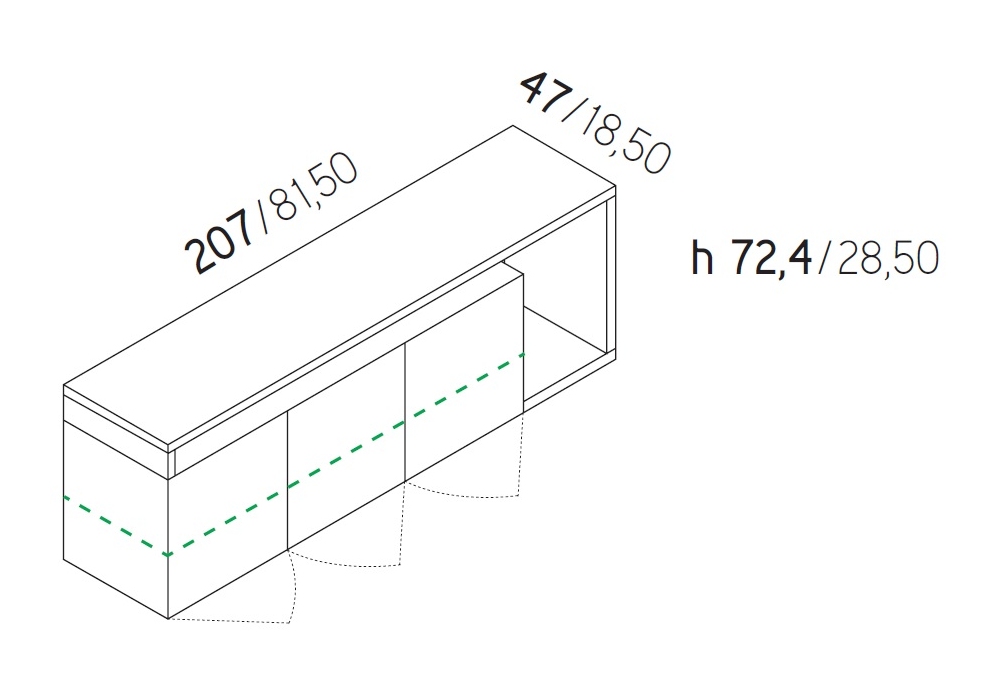 Aria diseñado por Studio KBDS para Minotti Italia es un aparador en madera aglomerada con tres puertas batientes y tres estantes móviles. Acabado en relieve disponible en diferentes colores, contenedor y marco pueden tener diferentes colores. El acabado del contenedor también está disponible en pan de oro o plata.