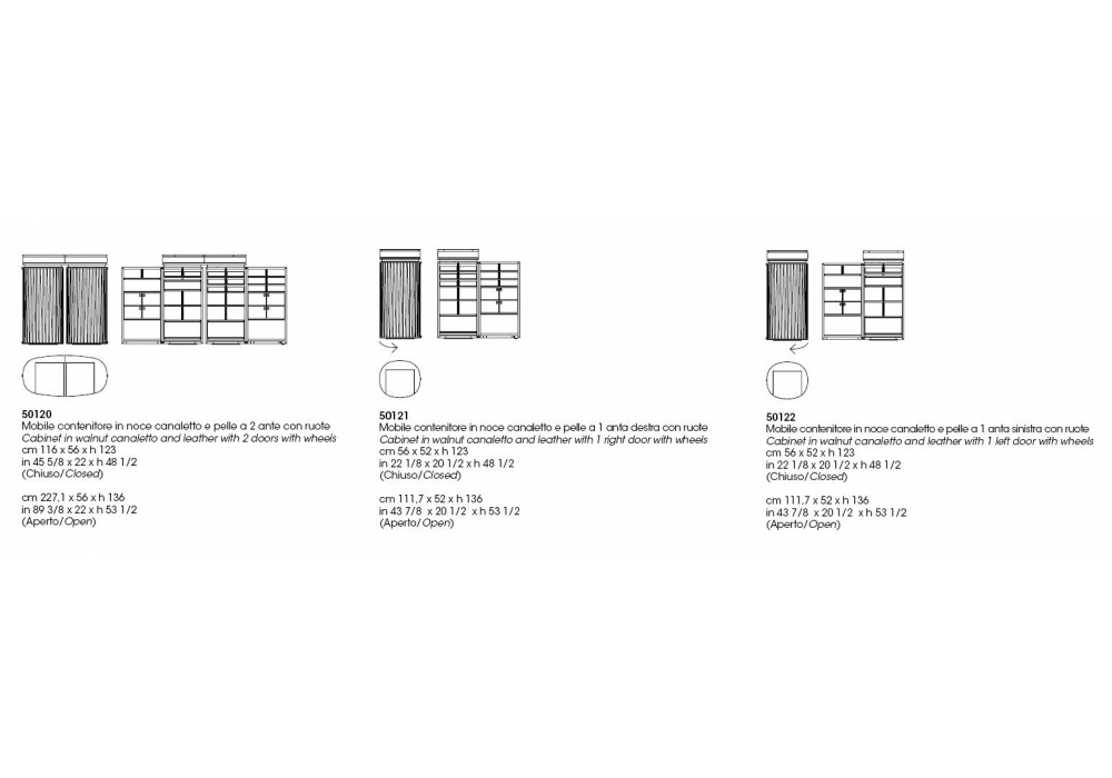 Houdini diseñado por Roberto Lazzeroni para Giorgetti es un mueble contenedor disponible con columna simple (con apertura de puerta a derecha o izquierda) o doble, con estructura en MDF chapado en nogal Canaletto. Cada modelo tiene un número diferente de compartimentos de almacenamiento en el interior, estantes de vidrio templado (bronce para la versión de nogal, gris para la versión de arce) y puertas con inserciones de cuero. El mueble está equipado con luces LED, con sensor de encendido y apagado, en todos sus modelos. Los pies son regulables en altura, cada puerta está equipada con una rueda que facilita la apertura.