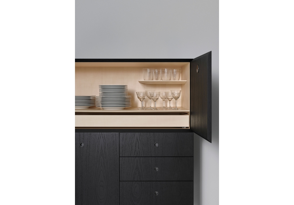 Offshore diseñado por Piero Lissoni para Porro es un aparador de madera de fresno. los interiores son de arce natural y los cajones son de contrachapado de abedul. El aparador está disponible en 4 tipos: 2 altos y 2 bajos.