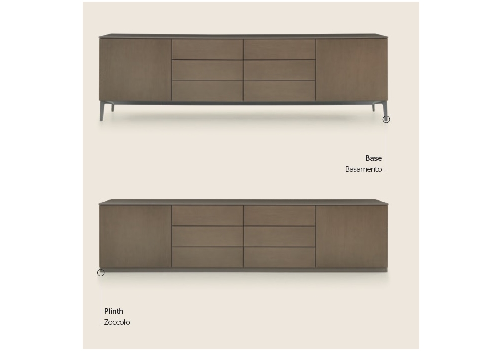 505 UP diseñado por Nicola Gallizia para Molteni&C es un aparador con mil caras, al igual que las innumerables variaciones y combinaciones de sus fachadas. Viene con una profundidad dedicada y una opción doble para la base: en el suelo con un zócalo o con una base de metal para una versión más ligera.