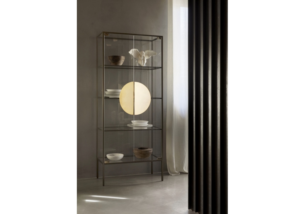 Yang diseñada por Marta Giardini para Opinion Ciatti es una vitrina en vidrio templado con tirador decorativo. Disponible en dos acabados: estructura con acabado negro mate, tirador en acabado níquel negro y cristal ahumado; estructura con acabado en latón bruñido, tirador en acabado oro 24 K y cristal transparente.