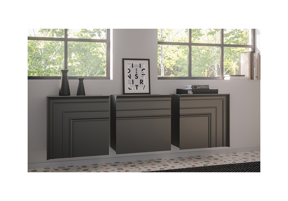 Gessolina diseñado por Bellavista & Piccini para Minotti Italia es un contenedor colgante en madera aglomerada con puerta escultórica, estante interno regulable en altura. Disponible en diferentes acabados, modelos y configuraciones.