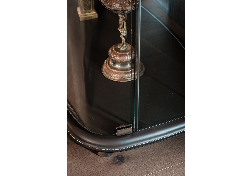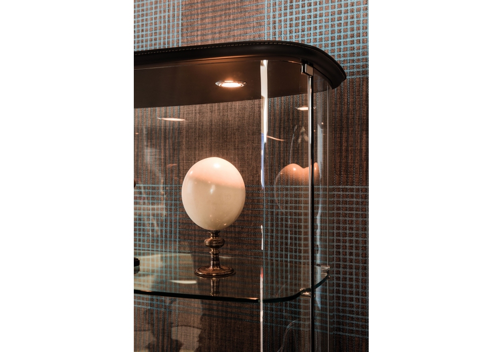 Concerto diseñada por Studio 28 para Cattelan Italia es una vitrina con iluminación Led. Es realizada en cristal transparente con base y cielo en cuero.