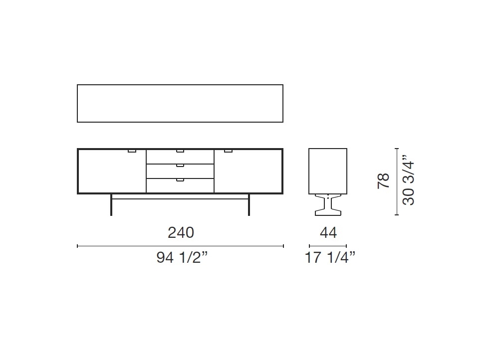 Simplon diseñado por Jasper Morrison para Cappellini es un aparador con puertas y cajones en lacado mate, lacado brillante o roble. Patas en aluminio anodizado.