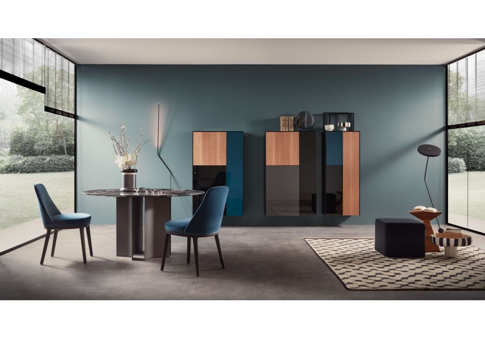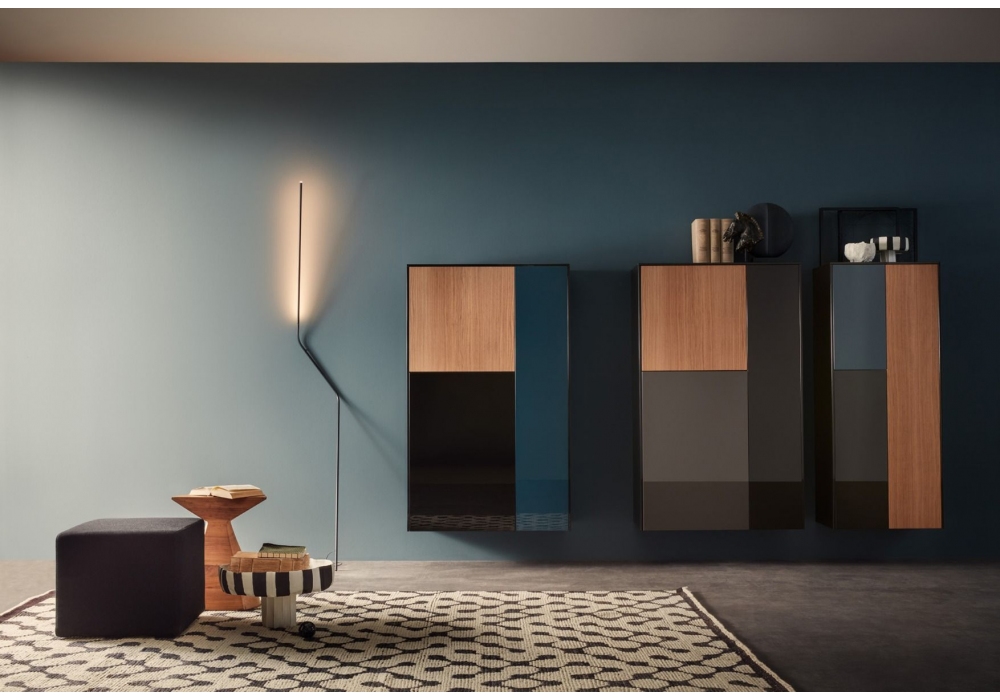 Vanity diseñado por David Lopez Quincoces para Lema es un sistema modular que esconde un perímetro luminoso que transforma el producto en un espacio, un lugar refinado y acogedor para el maquillaje, o un rincón discreto y apartado para un trabajo inteligente, en línea con lo nuevo. dinámica del espacio doméstico. La luz, cálida y regulable, dibuja un elegante marco alrededor del Smart Mirror, que en su pureza formal redonda completa un conjunto geométrico y riguroso, dando vida a una luz perimetral delicada y difusa o una luz frontal más inmediata. Disponible en nogal L, roble tratado térmicamente y acabados lacados mate o brillante.
