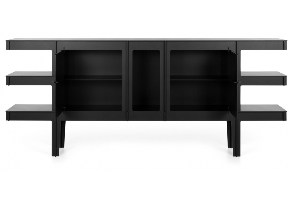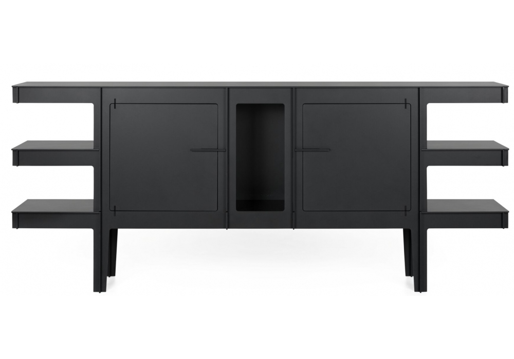 No Screw No Glue diseñado por Joost van Bleiswijk para Moooi es un aparador de richlite, un material elaborado con papel reciclado y resina EcoBind. Disponible en color diamante negro.