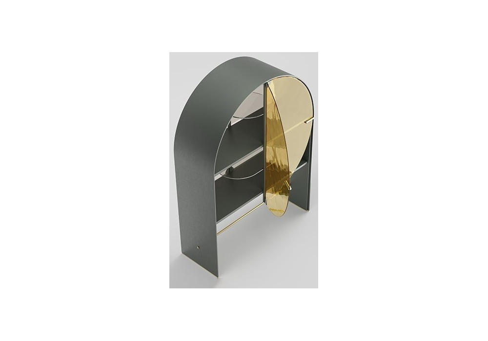 Soda diseñado por Draga & Aurel para Gallotti&Radice es un aparador con estructura en madera lacada “elephant grey” y puerta en vidrio templado fundido de 6 mm lacado color ámbar. También disponible en versión con estructura en fresno teñido negro poro abierto y puerta en vidrio templado fundido de 6mm color "grigio Italia". Ambas versiones con respaldo y baldas en templado de 6mm copa ahumada “grigio Italia”. Detalles en latón satinado.