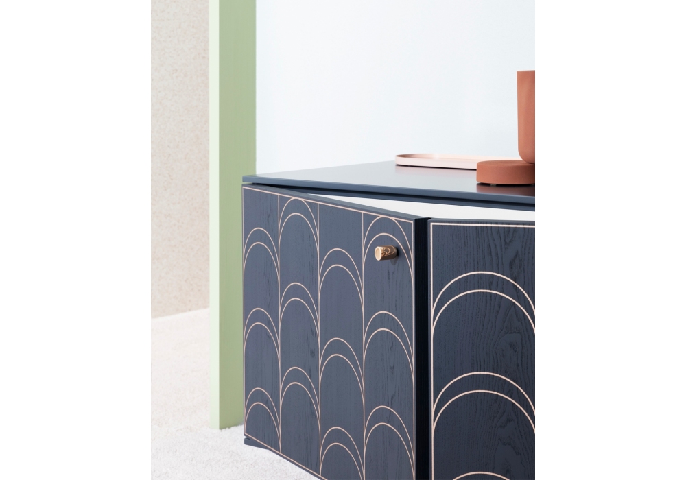 Célia diseñado por Miniforms Labs es un aparador con estructura lacada. Puertas con apertura abatible, con diseño serigrafiado sobre nogal canaletto o fresno negro. Disponible en diferentes acabados y medidas.