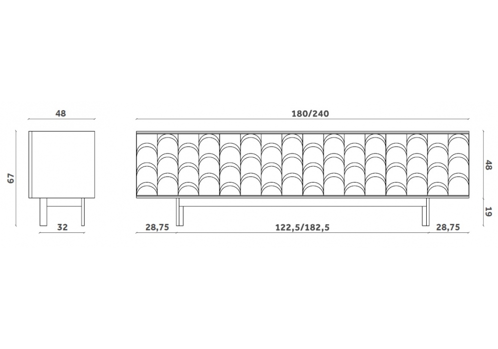 | Dimensiones | • 180 x 48 x H 67 cm; • 240 x 48 x H 67 cm |
