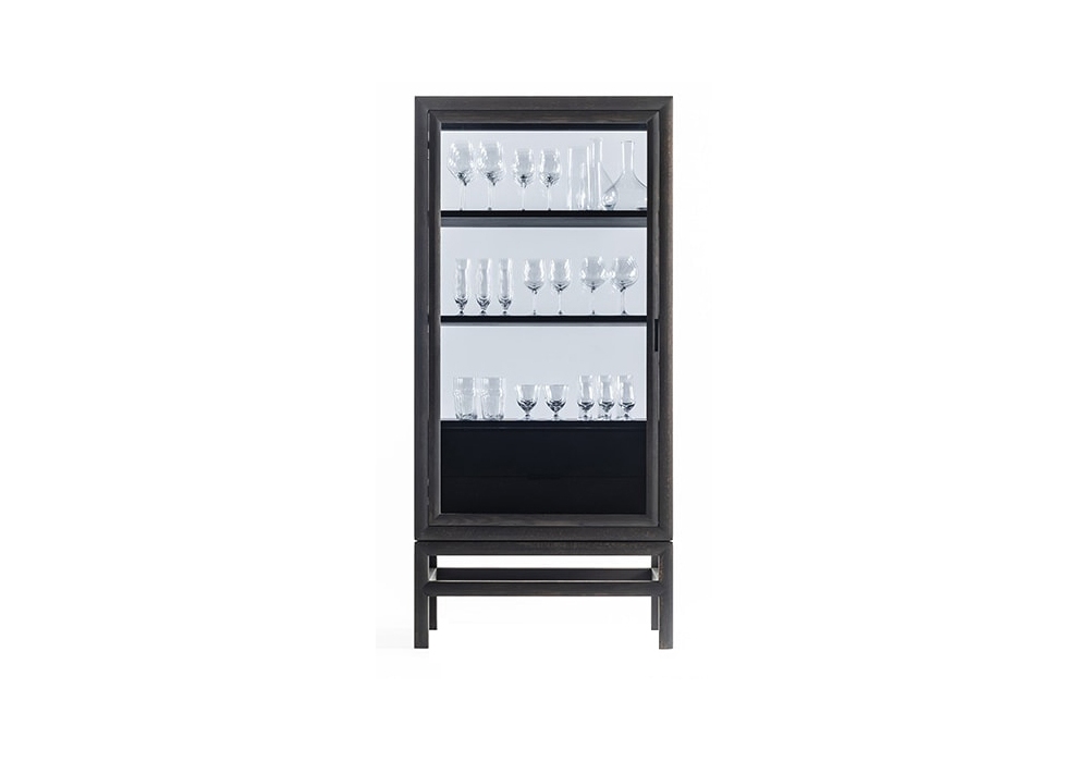 Silent Cabinet diseñado por Time & Style ēdition para DePadova es un contenedor, estructura y puertas en roble macizo y paneles alveolares enchapados en roble teñido blanco nieve o gris antracita, acabado con barniz transparente al agua o al disolvente. Puerta con celosía interior de madera maciza. Cristal transparente revestido con película de seguridad antideslumbrante gris y patas regulables. Disponible en dos tamaños.