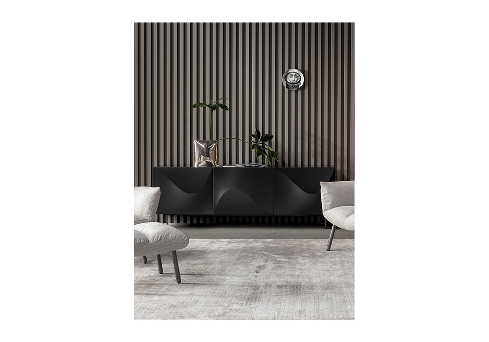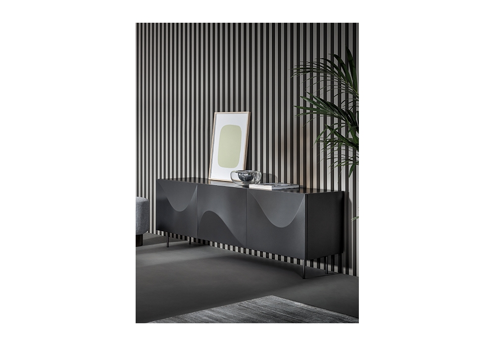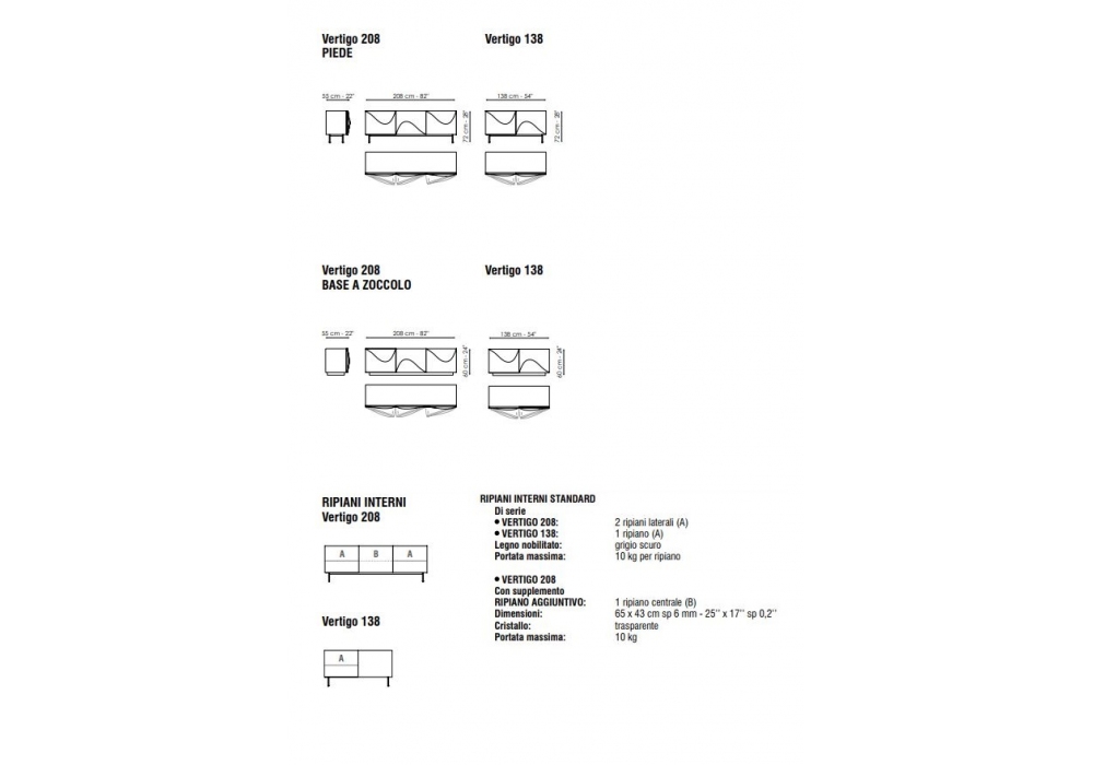 Vertigo diseñado por Dondoli e Pocci para Bonaldo es un aparador con estructura externa en madera lacada mate, puertas en poliuretano estructural lacado y base en metal pintado, disponible en dos tamaños y en 3 combinaciones de colores. El aparador se fabrica con base de zócalo o con pies. Los estantes internos son de madera de melamina (bajo pedido, también disponible en vidrio transparente).